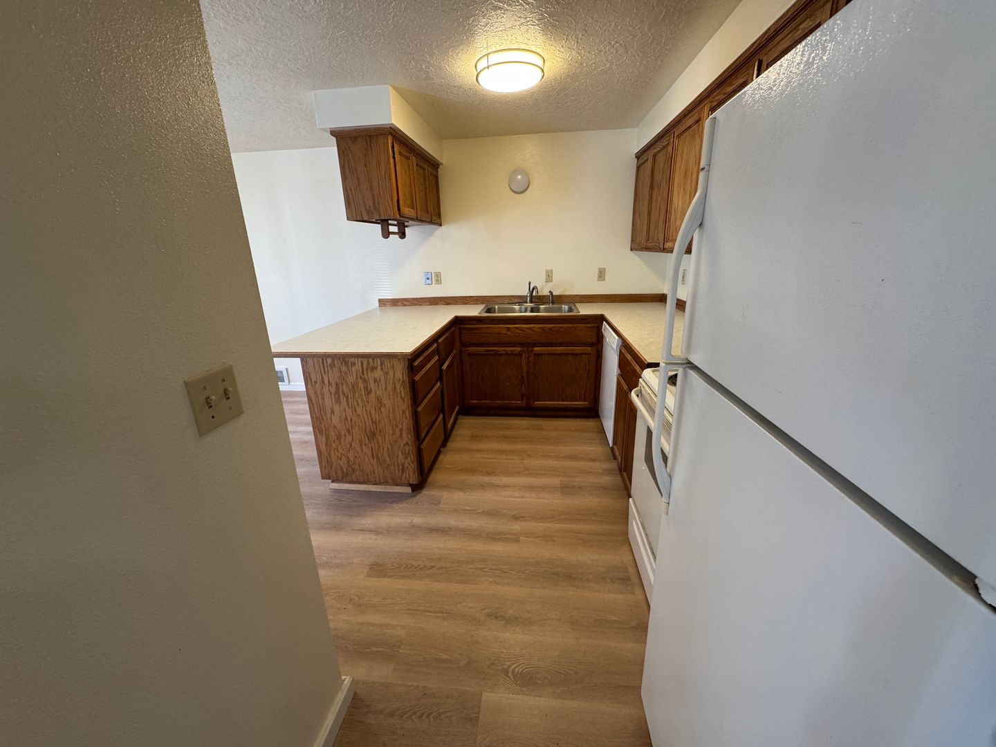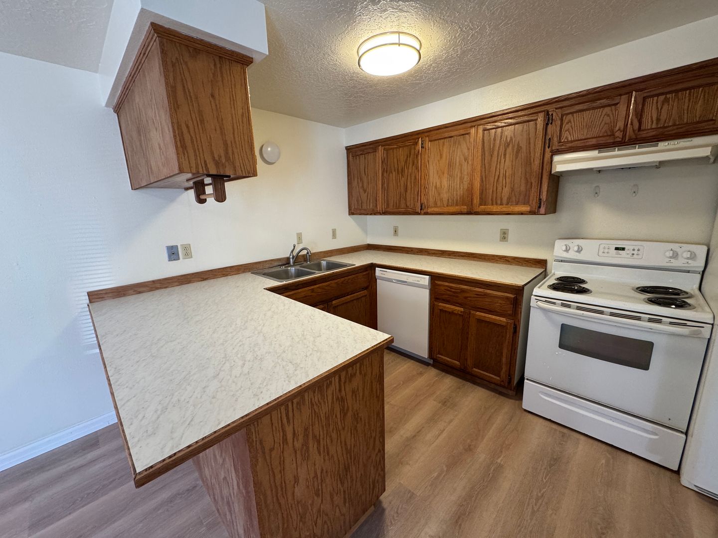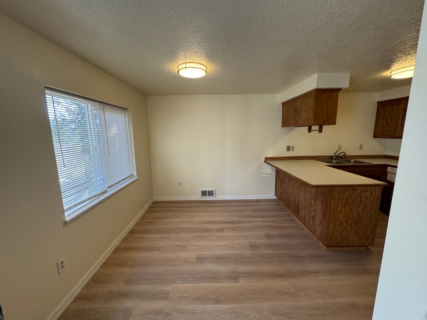 2 Bedroom, 1 Bathroom in Toledo. Quiet complex and setting. All new flooring through out and new kitchen countertops. Washer/dryer hookups in unit. Parking for one vehicle only. Water and garbage are provided - tenant is responsible for electric.